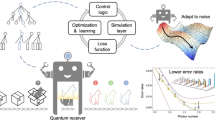 Finally, the scheme is applied in a practical sensing scenario as a quantum radiometer. Based on the device shown in Fig. 1c and using the readout cavity as a receiver to the microwave field under detection, the excitation population of the readout cavity p = ω/χ could be derived by the quantum sensor with a calibrated cross-Kerr coefficient χ between the probe and the receiver. Following the sequence shown in Fig. 4a, the resulting oscillations shift due to the acquired phase φ from the receiver population p = 0.037 induced by a continuous weak coherent signal [Fig 4b]. It is observed that φ increases linearly with the acquisition time Mτint as expected, but the contrast of the signal fades due to decoherence and errors that cannot be completely corrected. With an appropriate φ0, the sensitivity of the output Pg could be maximized by optimizing the slope ∂Pg/∂p for p ≈ 0. The results in Fig. 4c for different \(|{\psi }_{m,n}\rangle\) show the maximum slopes around p ≈ 0 proportional to n − m. From these results, the achieved experimental sensitivity for measuring p is derived as