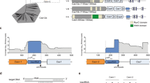 For gRNA expression in transient transfection experiments in Fig. 1a, b, linear gRNA constructs were generated to express gRNAs from a U6 promoter as PCR amplicons8. For gRNA expression in transient transfection experiments in Fig. 1c–e, pUC19-derived plasmids were constructed to express gRNAs from a U6 promoter. For effector expression in transient transfection experiments in Fig. 1a–c, Cas12i2 WT, single-substitution variants, ABR-001, and SpCas9 were cloned into pcDNA3.1(+) vector (Genscript) to be expressed from an EFS promoter. For the effector expression in transient transfection experiments in Fig. 1d, e, ABR-001, and SpCas9 were expressed from a CMV promoter. All plasmids used for transient transfections were prepared at Genewiz using Maxi- or Mega-prep with an endotoxin-free wash.