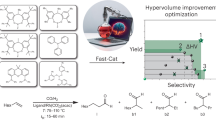 Comprehensive catalyst screening on the SAC library was then conducted in the reaction-limited (i.e., 7.5 mL min−1) and low conversion regime (<30%) in Fig. 4b. Our Pt1-MoS2 outperforms other types of SACs and control samples. Detailed TOF analysis in Supplementary Fig. 15 shows comparable values to that of flow rate testing. Quantitative conversion to aniline over a wide temperature range (40–70 °C) could be achieved at a lower flow rate (1 mL min−1) using Pt1-MoS2 in the extra catalyst screening in Supplementary Fig. 16. The intrinsic chemoselectivity of Pt1-MoS2 was confirmed by the reduction of 4-nitroacetophenone to the desired 4-amino-acetophenone (99% selectivity) with an apparent activation energy barrier of 65 kJ mol−1 in Fig. 4c. This indicates that the thermodynamic selectivity of the reaction depends on the preferred interaction between the nitro group and atomic metal site, rather than on kinetically controlled reactivity33. The stability tests were conducted at low conversions (<10% and <30%) for a continuous 12 h operation at 70 °C. No significant decay was observed in Fig. 4e and Supplementary Fig. 17, despite minor fluctuations in yield due to temperature fluctuation and GC-MS sampling. Further stability examination was conducted in the quantitative conversion regime for 24 h to demonstrate the steady production of valuable products (Supplementary Fig. 18). We have also performed a comprehensive characterisation of the spent catalyst by XRD, XAS and STEM in Supplementary Fig. 19 and 20 to prove the single atom nature after reaction. Importantly, the productivity of our reactor can be significantly enhanced by operating at a higher reactant concentration (0.2 M). We can achieve a maximum aniline productivity of 5.8 g h−1, corresponding to a TOF value of approximately 8000 h−1 in Supplementary Fig. 21, which is much higher than the reported values of 0.02–0.07 g h−1 for the same SAC-mediated reaction using batch reactors33,34,35,36,37,38.