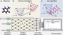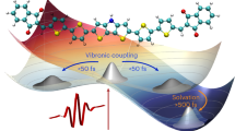 where \(\alpha =\exp (-2{\cos }^{2}(\theta )\,\mathop{\sum }\nolimits_{k = 1}^{55}{s}_{k})\). These energetic corrections are in complete analogy to the well-known light shifts in atomic physics. The sign of these energy shifts is determined by the difference in excitonic splitting and vibrational frequency, Δ − ωk. We note that the vibronic energy renormalization can also be described in the regular electronic-vibrational basis without the polaron transformation using second order perturbation theory (see Supplementary Note 2).