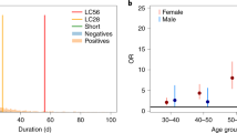 One LS (Born in Bradford) used a different method to ascertain symptom duration, which counted individual symptom reporting over time (recorded retrospectively over several months). We used the same methodology in a second LS (TwinsUK) for comparison. Using this approach, reporting of 4–12 week symptoms ranged between 22.7% and 25.8% and of 12+ week symptoms from 40.9% to 45.6% (Table 2). However, by this method, high proportions of long COVID reporting were also found in those who had not had COVID-19 (21.8% reporting symptoms lasting 4–12 weeks, and 28% reporting symptoms lasting 12+ weeks, Supplementary Table 6). Therefore, data for long COVID ascertained in this way were not taken forward to risk factor analysis due to uncertainty that respondents truly met NICE criteria for a long COVID diagnosis, which require that symptoms are “not explained by an alternative diagnosis”.