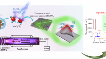 X-ray photoelectron spectroscopy (XPS) was performed to analyse the electronic states. As shown in Supplementary Fig. 7a, clear Mo and C peaks appeared in the full spectra. The peaks of Mo 3d are divided into three groups, including two peaks of Mo2+ at 228.5 and 231.7 eV, two peaks of Mo3+ at 228.9 and 232.1 V, and two peaks of Mo4+ at 229.9 and 233.1 eV, respectively (Fig. 2d)33,34,35. It is still debating for the exact valence states of Mo in Mo2C or MoC. Most studies suggest the dominance of Mo2+ in Mo2C and Mo3+ in MoC, and higher valence states of Mo4+, Mo5+, and Mo6+ result from partial oxidation36,37. Under this assumption, compared with the Mo2+ peak in Mo2C and the Mo3+ peak in MoC, in the Mo2C/MoC/CNT film, the Mo2+ peak apparently blueshifts (~0.6 eV) while the Mo3+ peak redshifts (~0.5 eV), suggesting the existence of electron transfer from Mo2C to MoC in the heterogeneous composite. Note that the strong Mo4+, Mo5+, and Mo6+ peaks in the MoC sample should result from the surface MoOx because MoC is very prone to oxidation. Furthermore, we investigated the charge distribution in Mo2C and MoC by DFT calculations. As shown in Supplementary Fig. 8, each Mo atom loses about 0.80 and 0.50 electron, respectively, in the body of the MoC (111) and Mo2C (100) regions, while at the Mo2C/MoC interface, each Mo atom loses about 0.75 and 0.70 electron because of the electron transfer from Mo2C to MoC regions. This result clearly proves that the charge transfer exists solely at the Mo2C/MoC interface. In addition, evident peaks in the C 1 s spectra of C–C, C–O, O = C–O, and Mo–C are derived from CNT and MoxC (Fig. 2e)38. However, the peaks of N 1 s are not observed in the XPS spectra though urea is a precursor. This may be because N cannot replace C as a doping atom at a high temperature of ~1770 K (Supplementary Fig. 7b) during rapid heating. We also verified the absence of N using a material element analyser, as shown in Supplementary Table. 1. Thermogravimetric (TG) analysis was performed in air at 30–700 °C to estimate the content of each component in the Mo2C/MoC/CNT film (Fig. 2f). A significant increase in weight from ~250 to ~450 °C is mainly due to the oxidation of MoC and Mo2C to MoO3, followed by a weight loss caused by the oxidation of CNTs to CO2. Combining XRD and TGA data, the wt% of Mo2C, MoC, and CNTs in the Mo2C/MoC/CNT film is estimated to be ~15.4%, 22.8%, and 61.8%, respectively.