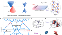 We note that a soft Coulomb gap in the presence of strong electronic interaction results in Efros–Shklovskii hopping23, which would give a temperature dependence similar to Eq. (1), with the factor T−1/(d+1) being modified to T−1/2 for all dimensions. However, the 3D variable range hopping gave the best fit to our data (r2 = 0.996) compared to other temperature dependencies which we considered (see Supplementary Fig. 11a). Furthermore, the low-temperature behaviour of the thermopower significantly deviates from simple linear diffusion behaviour (see Supplementary Fig. 11b) and instead follows S(T) ∝ T1/2 (see Fig. 4b) which is also consistent with VRH in 3D34, corroborating the resistivity data. Finally, the low-temperature Hall mobility μH(T) also shows an almost constant temperature dependence, with slightly increasing values (see Fig. 4c), consistent with localisation of charge carriers near EF35. This picture of Anderson-localised states close to the Fermi level also reconciles many other peculiar properties of this compound, e.g., metallic thermodynamic and photoemission data in spite of semiconductor-like transport properties36, negative magnetoresistance37, etc., which have been an ongoing discussion over the past three decades20,36,38.