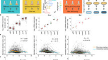To further verify the homogeneous developmental stage of our samples, we evaluated the age of each sample when they were harvested using the R package RAPToR (v1.1.3)28 (Supplementary Fig. 1). As the requirement of the package, we first generated gene-level expression abundances. Raw TPM of 22,268 reliably expressed transcripts in non-divergent regions were summarized into abundances of 13,637 genes using the R package tximport (v1.10.1)78. Normalization factors for each sample using gene-level abundances were calculated as described for transcript level and were used to normalize gene-level TPM. Correlation of log2(normalized TPM + 0.5) of our data against the reference gene expression time series (Cel_YA_2) in RAPToR was computed using the function ae() in RAPToR with 10,489 intersected genes and default parameters.