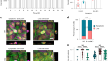 Immunostaining of fixed epithelia revealed that Pak3 was expressed in the A8a cells, as indicated by its decreased signals in Pak3 RNAi cells that were clonally introduced into wild-type tissues (Fig. 1c). Discs large (Dlg) is a lateral membrane-associated protein and a component of the septate junction, which corresponds to the tight junction in mammalian cells36. Signals of Dlg at cell–cell boundaries were indistinguishable between wild-type cells and Pak3 RNAi clones, suggesting that Pak3 RNAi does not compromise the integrity of epithelial cells (Fig. 1c).