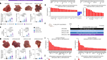 Besides being well equipped with PRRs to trigger an inflammatory response upon exposure to MAMPs29, mMDSCs are defined by their suppressive capacity on T cells in the context of cancer development. Interestingly, NEMO∆hepa/Nlrp6−/− mice displayed a strong reduction in cytotoxic CD8+ T cells (defined as CD45+CD3+CD8+) and CD4+ T cells (defined as CD45+CD3+CD4+) (Fig. 3h, Supplementary Fig. 4d). Consistent with suppression of T cells, mMDSC abundance was inversely correlated with cytotoxic T cells (**p = 0.0040, r = −0.5767) (Fig. 3i). Other immune myeloid and lymphoid immune cells subsets, including Kupffer cells, NK/NKT cells, and B cells remained unchanged (Supplementary Fig. 4e–h). We observed increased expression of the common M2 marker Arg1, while the M1 marker Nos2 was decreased in NEMO∆hepa/Nlrp6−/− mice, pointing towards a pro-tumorigenic microenvironment in these mice (Supplementary Fig. 4i).