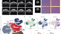 Finally, to validate the existence of RGPs in adult cortical neoplasia, we used the Nestin-Cre mouse model to drive Cre expression in vivo in cells that endogenously express Nestin, allowing us to activate oncogene expression in prenatal precursors in which Nestin is highly expressed at E12.5 (Supplementary Fig. 3a). We generated the NestinCre/+; p53f/f; Ptenf/+; R26tdTomato/+ tumour model in which Cre-mediated recombination results in the activation of the tdTomato reporter as well as the homozygous and heterozygous deletion of the two tumour suppressors, Tp53 and Pten, respectively, genes that are mutated/deleted in many GBM patients60. These mice develop anaplastic astrocytomas and GBMs by 12-36 weeks of age (Fig. 7a, b and Supplementary Fig. 10a). Magnetic resonance imaging (MRI) of the mice allowed us to confirm the presence and size of tumours in the cerebrum (Fig. 7b and Supplementary Fig. 10a). Once they reached an endpoint stage, tumours were removed, dissociated into single cells and FACS for tdTomato expression, before scRNA sequencing using the 10X platform (Fig. 7a and Supplementary Fig. 10d). We obtained a total of 6798 cells from two tumour replicates (collected at P112 and P108). To distinguish malignant and non-malignant cells within the two tumour samples, we clustered the tumour cells with normal GFP+ cells from the P111 timepoint in the developmental atlas (chosen as the closest timepoint to the age of the tumour mice). As expected, non-malignant cells intermixed with P111 cells, while the malignant cells clustered separately (Fig. 7c).