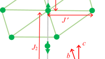 where u is the dynamical lattice displacement of Cr atoms away from their equilibrium positions. Therefore, the total spin Hamiltonian will be modified as H = H0 + HSLC. Various DFT calculations estimated the SLC coefficient dJij/du in CrGeTe320,21. For example, the calculated NN exchange J1 has an unidirectional relationship with atomic displacement \(d{J}_{1}/d{u}_{x}^{Cr}=-8.48\) meV/Å, with x along the nearest Cr–Cr bond [Fig. 1(b)]21. Figure 1(d) visualizes the temperature dependence of the in-plane (U11) and c-axis (U33) Debye-Waller factor in root-mean-square displacement for Cr, Ge, and Te obtained by crystal structure analysis of neutron single-crystal diffraction data of CrGeTe3 (see supplementary information for additional data and analysis). By multiplying the calculated SLC coefficient and refined Debye-Waller factor, we can quantitatively estimate the fluctuation of the exchange interactions at different temperatures. At 5 K, the Cr in-plane \({u}_{x}^{Cr}\), as estimated by \({u}_{x}^{Cr}=\sqrt{{U}_{11}^{Cr}}\), equals to 0.036 Å and therefore can modulate the NN exchange J1 by ~ 0.72 meV (FWHM = 2.36 × 0.036 × 8.48), including atomic displacements of Ge and Te atoms will have additional effect on J1.
