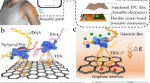Clustered regularly interspaced short palindromic repeats (CRISPR) technology has attracted extensive attention for the rapid analysis of nucleic acids with high specificity and accuracy due to its precise gene editing ability under the guidance of programmable single guide RNA (sgRNA) or CRISPR RNA (CrRNA)13,14. Unlike zinc-finger nuclease and transcription activator-like effector nuclease technology, CRISPR uses CRISPR-associated (Cas) effectors to recognize and edit specific gene sites, providing promising methods for sequence-specific detection, such as HUDSON-SHERLOCK15,16 and DETECTR17. Recently, various amplification-free analytical strategies based on CRISPR have been developed for nucleic acids18,19,20,21. Hajian et al. proposed a graphene field-effect transistor based on CRISPR-Cas9 for unamplified samples, with a detection limit of 1.7 fM20. Subsequently, Fozouni et al. constructed an enhanced amplification-free CRISPR-Cas13a platform with multiple CrRNAs for SARS-CoV-2 detection, with a higher sensitivity of 100 copies/μL21. Amplification-free CRISPR methodology could provide an effective and simple method for online nucleic acid wearable devices.