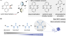 Xu, K. W., Li, W., Zhu, S. T. & Zhu, T. Atroposelective arene formation by carbene‐catalyzed formal [4+2] cycloaddition. Angew. Chem. Int. Ed., 58, 17625 (2019).