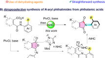 Amide bonds are not only essential functional groups in organic chemistry but also fundamental units of polypeptides and proteins. Direct activation of an amide bond is very challenging due to the high stability of the amide linkage. Notably, NHC-catalyzed amide C–N bond activation remains to be established. As a part of our ongoing interest in organocatalysis52,53,54,55,56, we envisioned the imides, containing a more reactive amide bond and unknown in the area of NHC, might be activated by NHC and further realize asymmetric reactions57,58,59. If successful, this methodology will expand the scope of carbene chemistry. Specifically, easily available cyclic imides were selected to investigate their asymmetric desymmetrization via amide bond activation by NHCs36,60,61,62,63. The success of the current strategy is determined by two key issues, namely: (i) increasing the reactivity of the imides to ensure C–N imide cleavage under NHC catalysis; (ii) both avoiding the background reaction and controlling the reaction conditions to ensure excellent enantioselectivities. Notably, the chiral center is far away from the reactive site, which makes enantiocontrol difficult.