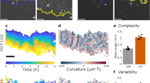 Lateral cell-cell junction linearity was defined as the ratio between the length (straight line between the further at the rear to the most in front cell-cell contact) and the actual distance of the lateral intercellular contacts (cell-cell junction contour), based on the N-cadherin staining (Fig. 2h). Linearity index is 1 when the cell-cell junction is perfectly straight.