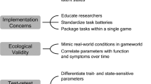 In this study, we put the large body of theoretical work to test and exploited the recent advances in the exploration literature to empirically investigate the link between impulsivity and exploration. Here, we investigated impulsivity as a broad spectrum across the general population and also with respect to a more specific ADHD-related impulsivity. We used a preregistered, dimensional approach via large sample online testing to provide a clear answer. We advanced on a method that has recently proven the most promising for detecting meaningful mechanisms underlying psychiatric symptoms39,40,41,42. We ran a big data dimensional study using our recently developed exploration task23, which was designed to disentangle the exploration strategies that have been put forward in the literature, and which allowed us to provide an answer to whether exploration behaviour is linked to impulsivity. To determine not only whether, but also which, exploration mechanism predicts impulsivity, we made use of computational modelling. Supported by previous findings that impulsivity is associated to increased avoidance of mental effort43 and that ADHD is associated to increased value-free random exploration22, we tested our hypothesis that it is specifically value-free random exploration (captured by our model parameter \(\epsilon\)) which correlates with impulsivity measures (cf. Table 1), therefore determining which of these mechanisms is impaired in impulsive participants. In addition, our data allowed us to explore how exploration impairments may be linked to other psychiatric domains (e.g., to OCD and other avoidance of uncertainty disorders44,45; to depression, anxiety and anhedonia46,47,48) using data-driven methods.