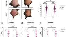 The skin, which consists of the epidermis and dermis, is the first line of defense against the external environment. Various myeloid cells, including Langerhans cells (LCs), DCs, macrophages, monocytes, and neutrophils, participate in skin innate immunity7,8. Conventional DCs (cDCs) and monocyte-derived DCs (moDCs) drive psoriatic inflammation, whereas plasmacytoid DCs (pDCs) are dispensable for IMQ-induced psoriatic plaque formation9,10,11,12. Macrophages in the skin are located in the dermis; they have scavenging and phagocytic activities as well as anti-inflammatory properties that contribute to the destruction of microorganisms and the maintenance of skin homeostasis7,11,13. Classically activated macrophages (M1 macrophages) and alternatively activated macrophages (M2 macrophages) undergo phenotypic switching according to the tissue microenvironment. M2 macrophages contribute to wound healing, angiogenesis, and tissue remodeling14,15,16.