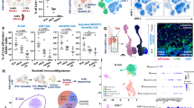 The extent to which and mechanisms by which tumor-draining lymphatics influence the tumor immune microenvironment during the response to ICI is not fully understood, although mounting evidence implicates their importance in antitumor immunity34,35,36,37,38. To address this, we profiled the TIME in 4MOSC1-tongue tumor-bearing animals treated with ICI after sham surgery or neck dissection. Histological analysis of the TIME with H&E and pan-CK staining reveals a predominantly lymphocytic infiltrate and less infiltrative cancer pattern in the primary tongue tumors of sham-operated animals compared to ND animals (Fig. 3a and Supplementary Fig. 3A). To define the changes in the TIME after neck dissection with greater resolution, we performed cytometry by time of flight (CyTOF), which revealed a tenfold over-representation of CD45- cells and a concomitant decrease in CD8 and CD4 T cells in ND versus sham cohorts, which was confirmed by IHC (Fig. 3b, c and Supplementary Fig. 3B). In addition, immunosuppressive myeloid populations—M-MDSCs and M2-Type macrophages—are overrepresented in the ND cohort (Fig. 3b). Of note, tumors for these experiments were harvested at a timepoint before which an objective change in tumor volume could be appreciated to control for any confounders attributable to tumors undergoing conspicuous, immune-mediated rejection (Supplementary Fig. 3C). The use of the MOC1 tongue tumor model revealed a similar reduction in CD8 T cells in the TIME following ND and treatment with combination αCTLA-4 and α1A8 (Fig. 3d).