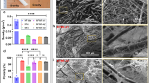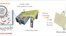 where \({\rho }_{b}\) is the density of bulk CNA sample. The coefficients in the equation are based on the mixing ratio between ANF and PVA (1:5). The densities of ANF (ρa = 1.44 g cm−3) and PVA (ρp = 1.19 g cm−3) are provided by suppliers. The pore size distribution of CNAs with different densities was measured by mercury intrusion porosimeter (MIP, AutoPore IV 9600) with pressure ranging from 0.1 to 6.1 × 104 psi.
