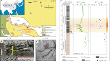 Putative methanogen microfossils have been found in these 13C-enriched dolomites from the adjacent Hongyanchi section, and their abundances show a positive correlation with δ13C values10. The elevated δ13C signature of the dolomites can therefore be used to trace changes in methanogenesis. In the current study, the dolomite δ13C values show an overall increasing trend from the bottom to the top within the succession (Fig. 3b). The dolomite beds and nodules that are marked by high δ13C values occur above ~610 m. Most importantly, the more abundant strongly 13C-enriched dolomites occur within the upper part of the Lucaogou Formation (Fig. 3b), indicating a higher methanogenic rate and/or an expanded methanogen community in the anoxic lake sediments during this period. In contrast, the absence of exceptionally 13C-depleted authigenic dolomite in the studied section (δ13Ccarbonate values typically <−30‰; C largely derived from biogenic CH4)40 suggests that the anaerobic oxidation of methane was not an important process occurring in the anoxic sediments at that time. Therefore, large amounts of CH4 produced in bottom sediments escaped substantial consumption and were emitted into the overlying water column; as such, they would have provided substrates for aerobic methanotrophs.
