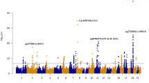After adjusting covariate variables age, sex, batch, and immune cell-type proportions and correcting inflation in each dataset (see details in Methods), the inverse-variance fixed-effects meta-analysis model identified 5 CpGs, mapped to the SPIDR, CDH6 genes, and intergenic regions at 5% false discovery rate (FDR) (Table 1, Supplementary Fig. 1). Among the genes that are associated with these CpGs, the SPIDR gene encodes the scaffolding protein involved in DNA repair, which regulates the specificity of homologous recombination to achieve a high degree of fidelity17. The CDH6 gene encodes a cadherins protein, which regulates synaptogenesis and synaptic plasticity18,19,20. Recently, CDH6 levels in plasma were also shown to be associated with AD in carriers of the APOE ε4 allele21. The most significant probe cg03429569 is located at 3018 bp upstream of the HOXD10 gene, a member of the HOX family, which was recently shown to be involved in the Rho/ROCK signaling pathway, essential for neuronal degeneration22 and regeneration23. An additional 45 CpGs were identified at a more relaxed significance threshold of P-value < 1 × 10−5 (Fig. 1, Supplementary Data 2). For these 50 AD-associated CpGs, the odds ratios ranged from 0.833 to 1.156 in the ADNI dataset and 0.748 to 1.178 in the AIBL dataset. In the meta-analysis, the mean and median effect size of methylation beta values (i.e., parameter estimate for methylation beta values in the logistic regression model) across all CpGs were −0.33 and −0.27, respectively. The mean and median effect size of methylation beta values for the 50 AD-associated CpGs were −3.20 and −6.00, respectively. The majority of the 50 significant CpGs were hypomethylated in AD subjects (35 CpGs), located outside CpG islands or shores (44 CpGs), or were in distal regions located greater than 2k bp from the TSS (41 CpGs). These observations are consistent with the knowledge that during aging, the strongest risk factor for AD, DNA methylation levels at intergenic regions are marked with hypomethylation24. Only a small number (9 CpGs) of these 50 CpGs were located in promoters of genes, which included NR1I2, STMN2, TREML1, FKBP5, EIF2D, PXK, UPK3B, TDGF1, and RCCD1.