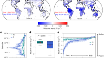 This work was supported in part by grants from the Australian Research Council Discovery scheme (grants DP160102452 and DP210100115) and the NSW Research Attraction and Acceleration Program (independent grants to D.S.E. and M.D.K.). D.S.E. also acknowledges research fellowships through the Chinese Academy of Sciences President’s International Fellowship Initiative, Grant No. 2018VBA0015, and the German Academic Exchange program (DAAD). M.D.K. acknowledge support from the Australian Research Council Centre of Excellence for Climate Extremes (CE170100023), the ARC Discovery Grant (DP190101823). I.J.W. acknowledges support by Australian Research Council (DP170103410). Y.S., P.C., D.S.G., L.T.V. and I.A.J. are funded by the “IMBALANCE-P” project of the European Research Council (ERC-2013-SyG-610028). A.P.W. was also supported by the US DOE, Office of Science, Office of Biological and Environmental Research at Oak Ridge National Laboratory, which is managed by UT-Battelle, LLC, for the US DOE under contract DE-AC05-00OR22725. J.L.Z. received funding from the National Natural Science Foundation of China (31870385) and the CAS 135 program (2017XTBG-F01). K.J.B., T.F.D., F.Y.I. and P.M. were supported by the UK National Environment Research Council ‘Tropical Biomes in Transition (TROBIT)’ consortium via research grant NE/D01185x/1 to the University of Edinburgh. T.F.D. and S.G. received funds from USAID for funding via the PEER program (grant agreement AID-OAA-A-11-00012). The contribution of P.R. was supported by the U.S. NSF Biological Integration Institutes grant DBI-2021898.