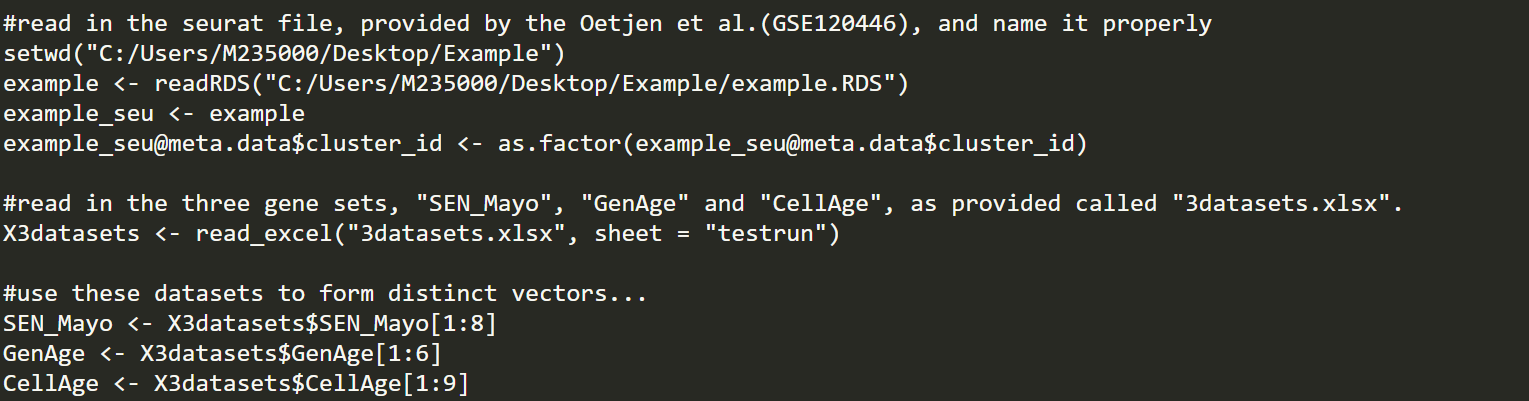 This article is very good, but after reading the article, I found that the SEN_Mayo gene set in the article is 3datasets.xlsx in the code, but the corresponding data is not provided. I don't know if the author can provide it? Thank you very much.