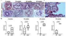 NIKf/f, IKKαf/f and K19-CreERT mice (C57BL/6J background) were described previously26,27,33. NIK and K19 reside in the same Chromosome 11. The NIKf/+;K19-CreERT−/+ genotypes were generated through homologous recombination in germ cell meiosis (low frequency). NIKf/f;K19-CreERT mice and IKKαf/f;K19-CreERT mice were treated with tamoxifen (5 mg/mouse, twice, 4 days apart, i.p.) at 7–8 weeks of age to generate NIKΔK19 and IKKαΔK19 mice, respectively. Olive oil vehicle was used as control. NIKf/f mice were injected with tamoxifen as an additional control. Mice were housed on a 12-h light-dark cycle and at 25 0C of ambient temperature in the Unit for Laboratory Animal Medicine at the University of Michigan (ULAM) and fed ad libitum a chow diet (9% fat in calories; TestDiet, St. Louis, MO), DDC diet, or ANIT diet.