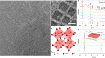 By adjusting the synthesis temperature, it was possible to tune the size of the synthesized NCs. Whilst we found the smaller NCs grown at 80 °C (5 ± 1 nm from transmission electron microscopy [TEM], Supplementary Fig. 1a, c and e) to be more colloidally-stable, the broad diffraction peaks were more difficult to distinguish. Therefore, to determine the phase-stability of the NaBiS2 NCs in ambient air, we examined the larger NCs grown at 150 °C instead (18 ± 4 nm from TEM, Supplementary Fig. 1b, d and f). Figure 1b shows that both the XRD pattern and visual appearance of larger NaBiS2 NCs did not change after 112 days at room temperature in ambient air, during which time the relative humidity varied between 60 and 70%. After 335 days in this environment, the same sample still remained phase-pure and maintained the same visual appearance, with only a slightly decrease in XRD peak intensity (Supplementary Fig. 2a). Similarly high air-stability is also expected in smaller NaBiS2 NCs despite the difficulty to compare the relatively weak and broad XRD peaks (Supplementary Fig. 2b). We note that due to the higher NC colloidal stability, the remainder of the experiments in this work are based on drop-cast films of NaBiS2 NCs synthesized at 80 °C.