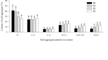 Aggregate size (dry sieving) and density fractionation were conducted based on Weng et al.42. No large macroaggregates (>2000 µm) were found in this study. Macroaggregates (250–2000 µm) and microaggregates (53–250 µm) were fractioned into free particulate organic matter (F-POM; ρ < 1.6 kg m−3), occluded POM (O-POM; >53 µm, ρ > 1.6 kg m−3), and mineral-protected soil organic matter (M-SOM, combining silt- and clay-bound SOM; <53 µm, ρ > 1.6 kg m−3).