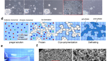 The void space of CMH was evaluated by immersing CMH in a fluorescence solution (50 kDa of fluorescent dextran) to fill the void volume and then imaged by confocal laser scanning microscopy (CLSM). As shown in Supplementary Fig. 3a, the interconnected pores with similar patterns can be observed by fluorescence images. The result showed average void volume and pore of CMH are approximate 39 ± 11.3% and 45.43 ± 9.8%, respectively (Supplementary Fig. 3b). It implicates the advantage penetration of cells into the scaffold. The zeta potentials of the GelMA and cystamine-modified GYBs (cys-GYBs) revealed opposite charges at pH 7, suggesting electrostatic attraction under neutral conditions (Fig. 2d–i).