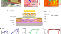 High-quality multiwall WS2 nanotubes were synthesized and the devices were fabricated, as shown in Fig. 1a and Supplementary Fig. 1. The spontaneous photovoltaic effect of WS2 nanotubes has been revealed in a previous report33, which is well reproduced in Fig. 1b and Supplementary Fig. 2. The photo absorption and photoelectrical response of WS2 nanotube cover the nearly full red to blue visible band, which makes WS2 nanotube suitable candidate to build the bottom devices for artificial vision systems, as shown in Supplementary Fig. 3 to Supplementary Fig. 8. The linearity of the photoresponse is evaluated in Supplementary Figs. 9 and 10. More interestingly, we discover that the photovoltaic effect of the WS2 nanotubes is programmable. As shown in the upper Fig. 1c, initially, the photovoltage of a WS2 nanotube device is 0.21 V and the photocurrent is −15.7 nA. By applying various negative voltages bias of −3 V, −4 V, and −5 V for 5 s prior to the I–V tests, the I–V curves shift and the photovoltage steps down to −0.07 V, −0.34 V, and −0.53 V, and the photocurrent increases to 6.0 nA, 14.3 nA, and 19.1 nA, respectively. The direction of the photovoltaic effect is reversed. Further on, the photovoltage and photocurrent can be reversed back by applying positive voltage. As shown in the lower Fig. 1c, by applying voltage bias of 3 V, 4 V, and 5 V to the same device, the photovoltage step from −0.49 V to −0.07 V, 0.14 V, and 0.17 V, and the photocurrent decrease from 18.6 nA to 5.3 nA, −23.9 nA, and −26.0 nA, respectively. The linear plot of the I–V curves is shown in Supplementary Fig. 11. Therefore, the photovoltaic effect of the WS2 nanotube is adjustable with a prior bias, rather than having a fixed direction and magnitude. The reversion of the photovoltaic effect is reproducible and is obtained on multiple WS2 nanotube devices, as shown in Supplementary Fig. 12. We also observe that there are devices with indistinctive initial photovoltaic effect, still, the application of prior bias can generate the programmable photovoltaic effect. Besides the photovoltaic effect, the prior bias also alters the rectification behavior of the WS2 nanotube devices as shown in Supplementary Fig. 13, which indicates the change of the electrostatic status inside the nanotube, as we will discuss later in this article.