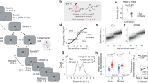 Sixty-four participants (aged 19–35 years, 43 women and 21 men) participated in the study after screening for psychiatric, neurological or medical conditions. All participants had normal or corrected to normal vision, were non-smokers, and gave their informed consent before the start of the study. The experiment was approved by the ethical review board of the University Medical Center Hamburg-Eppendorf (reference PV4648). Before each experimental session, participants were administered a pill containing donepezil (5 mg Aricept®), atomoxetine (40 mg Strattera®) or placebo (double-blind cross-over design). These pharmacological manipulations did not affect behavioral choice history biases7, and were therefore not incorporated in the analyses presented here.