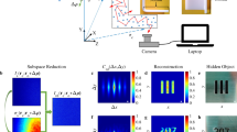 A possible approach to this problem is based on the idea that there are universal correlations in the scattered light, that does not depend on the fine details of the medium. In particular, the optical memory effect12,13 tells us that the speckle pattern we get when coherent light passes through a slab of scattering material14,15 is strongly correlated with the speckle pattern we get if we illuminate the scattering slab from a different angle16,17,18,19. This is a powerful tool for imaging, as it gives us information on the light on the hidden side of the scattering medium without ever having to measure anything there. In particular, it allows us to measure the autocorrelation of the hidden object20,21,22,23,24,25,26,27, which can be inverted using a Gerchberg-Saxton algorithm to obtain the shape of the object28,29,30, which is computationally intensive, in the sense that “there are no useful bounds on the number of iterations required to find the solution”31. Therefore, if objects in the scene are moving, there is no time to perform the autocorrelation inversion before the scene has changed.
