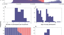where yc,p equals one if the contact c is tested positive 1–7 days after exposure to primary case p, and zero otherwise. Variantp determines if the primary case p was infected with Omicron BA.1 or BA.2. Vaccine-Status represents the fixed effects of vaccination status (categorical variable) for the primary case p and the contact c. Age represents fixed effects of sex, and HouseholdSize represents fixed effects of household size (categorical variable). SampleDate represents fixed effects of the sampling date of the primary cases’s positive test (categorical variable). Cluster-robust standard errors were implemented with clustering at the household level by using Taylor series linearization to estimate the covariance matrix of the regression coefficients27.