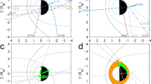Statistical errors for the histograms (Fig. 3b–d, Supplementary Fig. 9b–d) were estimated as \(2\sqrt{\sum N}/\sum N\), where N is the number of electron counts and Σ means the total of counts in measurements that came from all four spacecraft. This statistical error was multiplied by the averaged differential energy flux to produce the 2σ error bars (corresponding to the 95% confidence interval). This approach is similar to the method used by ref. 33, although the calculation is simpler here, because one original measurement (pixel) from a single energy/deflection step always contributes to a single bin in the present case. We subtracted the contribution of the photoelectrons from N using the ratio between the photoelectron flux and the residual (real) flux: the ratio was multiplied by the original N.