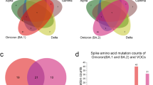hACE2-KI mice (B6.Cg-Ace2tm1(ACE2)Dwnt) and hACE2-K18Tg mice (Tg(K18-hACE2)2Prlmn) were described previously9,22. All mice were bred at the specific pathogen-free facility of the Institute of Virology and Immunology and housed as previously described10. Mice were anesthetized with isoflurane and inoculated intranasally with 20 μl per nostril. For single-infection experiments, 7–17-week-old male mice were inoculated with a dose of 2 × 104 TCD50/mouse of either Delta (EPI_ISL_2535433) or Omicron-BA.1 (EPI_ISL_7062525) isolates. For competition experiments, 7–19-week-old female mice were inoculated with a mixture inoculum containing the Delta and Omicron-BA.1 isolates or a mixture of the recombinant spike clones SARS-CoV-2S-Omicron and SARS-CoV-2S-Delta. Inoculum mixtures were generated by mixing the respective viruses aiming at a 1:1 ratio based TCID50/mL titers of the single virus. The ratio of each variant in the prepared inocula was further determined by standard RT-qPCR. At 2 or 4 dpi, mice were euthanized and organs were aseptically dissected. Systematic tissue sampling was performed as described previously9.