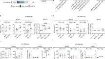A previous study demonstrated that coexpression of a CSR targeting PD-L1 (PD1CD28) augment the antitumor effects of CAR T cells18,19. As CAR T cells upregulate PD-L1 expression upon CAR activation20,22, it remains unclear whether PD1CD28-expressing T cells can interact with antigen-stimulated CAR T cells and regulate the antitumor effects of the CAR T cells. To answer this question, we designed a CAR vector targeting PD-L1, referred to as CARP, consisting of a scFv against human PD-L1 (3208)23, an intracellular domain that contained only the CD28 costimulatory domain without the CD3ζ chain, and a truncated CD19 (tCD19) tag, and a CAR vector targeting MSLN, named CARMz, containing a scFv against human MSLN (SS1)24, the CD28 costimulatory domain, the CD3ζ chain, and a GFP tag. CAR19z, which contains a FMC63 scFv25, the CD28 costimulatory domain and the CD3ζ chain, served as a negative control (Supplementary Fig. 1a). We transduced these CAR vectors individually into T cells (Supplementary Fig. 1b). CARP T cells were cocultured with K562-PDL1-GL cells, a leukemia cell line that was negative for MHC-I molecules and engineered to express PDL1-GL, a vector containing PD-L1, GFP and luciferase (Supplementary Fig. 2a, b)26. We found that the percentage of CD25+CD69+ cells in CARP T cells and the amount of IL2 and IFN-γ produced by CARP T cells were increased in the co-culture, compared with those of CAR19z T cells (Supplementary Fig. 2c, d). However, CARP T cells did not lyse K562-PDL1-GL cells as it is also observed with the control CAR19z cells (Supplementary Fig. 2e). These results show that CARP T cells could be activated by tumor target cells expressing PD-L1 but did not lyse them in vitro. In contrast, CARMz T cells efficiently lysed HeLa-GL cells, a cervical cancer cell line that spontaneously expresses MSLN but not PD-L1, and was engineered to express GFP and luciferase (GL) (Supplementary Figs. 2a, 3a–c). In line with previous studies20, CARMz T cells exhibited upregulated PD-L1 at 16 h post-coculture with HeLa-GL cells but its expression attenuated at 48 h post-coculture (Supplementary Fig. 3d, e).