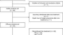 Regarding the 39 RECIST-evaluable patients, there were 10 (26%) PR and 29 (74%) SD as a result of local assessment, while there were 9 (23%) PR, 29 (74%) SD, and 1 (3%) PD after central radiological assessment (Fig. 2). Remarkably, the median time to obtain radiological PR was 3 (0.5–12.2) and 6.3 (2.3–18.6) months for local and central assessments, respectively. And the median time to obtain a clinical response was 0.9 months (0.2–2.9).