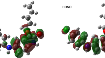 Aromatic stacking interactions were calculated following the conventions of Marsili et al.82 (Shown in Fig. 5) with modified distance and angle cutoffs. The cutoffs were selected based on the observed locations of free energy minima of parallel (face-to-face) stacked and T-stacked conformations between the EPI ligands and protein aromatic sidechains. For a protein aromatic ring and a ligand aromatic ring: we define R as the distance between ring centers, \(\hat{R}\) as the unit vector connecting the ring centers, \(\hat{n}\)protein and \(\hat{n}\)ligand are normal vectors to the sidechain and ligand ring planes originating from the ring centers, θ is the angle between \(\hat{n}\)protein and \(\hat{n}\)ligand (θ = arccos(|\(\hat{n}\)protein\(\bullet \hat{n}\)ligand | )), and ϕ is the angle between \(\hat{n}\)protein and \(\hat{R}\) (ϕ = arccos(|\(\hat{n}\)protein\(\bullet \hat{R}\)| )). Parallel stacked conformations were defined as occurring when R < 6.5 Å, θ < 60°, and ϕ <45° and T-stacked conformations were defined as occurring when R < 7.5 Å, θ > 75°, and ϕ <45°. In the evaluation of the free energy surfaces, we chose not to distinguish between angles of θ and π– θ and between angles of ϕ and (π–ϕ). Distance–angle probability distributions and corresponding free energy surfaces (Fig. 5) were normalized by a factor R2 sin(θ) to obtain a flat free energy profile in the case of configurations with no angle or distance preference88,89.