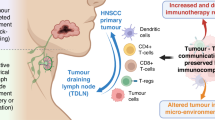 Improving response to immunotherapy requires a re-evaluation of its integration into standard-of-care treatment. Comprehensive nodal dissections and irradiation of involved lymph nodes are known to reduce the recurrence of regional and distant metastases. In the absence of sentinel lymph node mapping, however, it is often challenging for clinicians to evaluate the extent of nodal disease involvement. Neck dissections and elective nodal irradiation (ENI) are therefore commonly adopted strategies to decrease regional and distant metastasis6. Such targeting of tumor draining lymph nodes (DLNs), a site for T cell immune priming7,8,9,10,11, could lead to a considerable decrease in the number of immune cells migrating to the TME for antigen-specific cell kill. Since immunotherapies are inherently reliant on the immune system, and the lymphatics, some have argued that immunotherapies may be more effective without comprehensive neck dissections or ENI12,13,14.