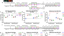 All experiments were performed during the daytime between 10 a.m. and 6 p.m., and each test session lasted for 3 h. For the 2-minute occipital cortex inhibition experiments, in each session, we applied 2-min of light stimulation (pulse duration: 5 ms; pulse interval: 45 ms; 21 trials/session) with a time interval of 5–7 min. For the occipital cortex inhibition experiments, the light power measured at the surface of the skull is 10 mW, which is equivalent to 0.004 mW when delivering light through an optical fiber with a diameter of 200 µm. Each mouse was tested for five sessions (1 session/day). For the 20-min occipital cortex inhibition experiments, we applied 20-min of light stimulation (pulse duration: 5 ms; pulse interval: 45 ms; 5 trials/session) with a time interval of 8–10 min in each session. The light power measured at the surface of the skull is 20 mW, equivalent to 0.008 mW when delivering light through an optical fiber with a diameter of 200 µm. Each mouse was tested for five sessions (1 session/day).