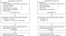 We further assessed the quality of life as an explorative objective. There were 79 patients with available results from the Quality of Life questionnaire. The global health status and functioning subscales in QLQ-C30 tended to be reduced in the first two months post-administration, but remained stable thereafter (Fig. 4a). The mean physical functioning subscales in QLQ-BR23 remained stable throughout the treatment period (Fig. 4b). Mean change from baseline at any time point in neither questionnaire exceeded the threshold for a clinically meaningful deterioration.
