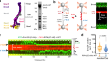 To validate the classification of different DNA regions, we introduced the eukaryotic RPA complex that binds to ssDNA but not dsDNA15. Two-color imaging using Cy3-labelled Smc5/6 and LD650-labelled RPA showed that the RPA-coated ssDNA regions were indeed flanked by Smc5/6 streak signals (Fig. 1e), confirming that these streaks were at DNA junction sites. The preferential binding of Smc5/6 to DNA junctions over dsDNA regions was still observed in the presence of RPA, although the Smc5/6 intensity at the junctions was somewhat lowered perhaps due to the competition between Smc5/6 and RPA for ssDNA binding (Fig. 1f).