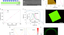 Our microcavity samples40 were made by directly solution-synthesizing the CsPbBr3 (exciton binding energy ~36 meV44) single crystals inside the prefabricated empty optical cavities, which were formed by a unique wafer-bonding process. Chemical synthesis under nanometer-size confinement enables highly homogenous single-crystalline perovskite microwires and plates with substantial sizes (Fig. 1), without any sample degradation due to the top DBR fabrication.