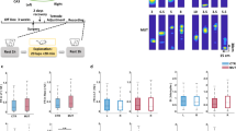 Data are presented as means ± s.e.m. unless specified otherwise. Box plots represent median, first, and third quantiles, and their whiskers show minimum and maximum values. In box plots, outlier values are not shown for clarity of presentation, but all data points and animals were included in statistical analyses. Statistical analyses were performed using Excel (Microsoft) with Statcel4 (OMS, Japan) and MATLAB (Mathworks, USA) as described previously32. Comparisons of data between two groups were analyzed with a two-tailed Student’s t test, Wilcoxon rank sum test, Wilcoxon signed-rank test, or Brunner-Munzel Test based on the distribution and “n” size of the data. Correlation was analyzed with a Pearson correlation coefficient test. Multiple-group comparisons were conducted using two-way analysis of variance (ANOVA) with a two-tailed post-hoc Tukey–Kramer multiple comparisons test when significant main effects were detected. Adjustments were made for Tukey–Kramer’s multiple comparison test. Quantitative data are expressed as means ± SEM.