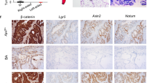 All animal experiments were performed in accordance with UK Home Office regulations (under project licence 70/8646) and by adhering to the ARRIVE guidelines with approval from the local Animal Welfare and Ethical Review Board of the University of Glasgow. Mice were housed in conventional cages in an animal room at a controlled temperature (19–23 °C) and humidity (55 ± 10%) under a 12 h light/dark cycle and were fed standard rodent chow and water ad libitum. All mice were maintained on a mixed C57BL/6 background. Mice of both sexes, aged 6–12 weeks, were induced with a single intraperitoneal (i.p) injection of 2 mg tamoxifen as indicated (Sigma-Aldrich, #T5648). The transgenes/alleles used for this study were as follows: VilCreER32, Apc580S42, KrasG12D44, Alk5CA33, Alk5fl75, BcatEx3 43 and Smad4fl38. For tumour growth studies, mice were aged until they showed clinical signs of intestinal disease (anaemia, hunching and/or weight loss). For treatments, mice were dosed one day after tamoxifen injection using the following regimens: ALK5-inhibitor/ (ALK5i)/AZ12601011 (50 mg/kg, twice-daily oral gavage, AstraZeneca), vandetinib/ZD6474 (50 mg/kg, once-daily oral gavage, LC Laboratories; #V-9402), selumetinib/AZD6244 (25 mg/kg, twice-daily oral gavage, AstraZeneca; AZ12252244), sapitinib/AZD8931 (25 mg/kg, twice-daily oral gavage; AstraZeneca). All of the listed drugs/reagents were made up in 0.5% hydroxypropyl methylcellulose (HPMC) and 0.1% Tween-80. For regeneration studies mice were exposed to whole-body irradiation with γ-rays (10 Gy).