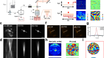 The backbone of the 1.3-μm RMM system is an interferometric confocal microscope, but we replaced the confocal pinhole and photodetector with a camera to measure the phase and amplitude of all the elastic backscattering signals from the sample (Fig. 1a) (see Supplementary Fig. 1 for detailed experimental setup). A wavelength-tunable pulsed laser (INSIGHT X3, Spectra physics) with a bandwidth of 19 nm at the wavelength of 1.3 μm was used as the light source to provide a coherence gating window (or time-gating window) of 25 μm. The output beam from the laser was delivered to the sample via two galvanometer scanning mirrors for raster scanning with a focused illumination at the sample plane. A long-working-distance objective lens (XLPLN25XWMP2, Olympus, ×25, 1.05 NA) was used to ensure a high spatial resolving power for obtaining images from areas deep within the tissues. The backscattering signal from the sample was captured by the same objective lens and then delivered to the camera after being descanned by the same scanning mirrors. A fast InGaAs camera (Cheetah 800, Xenics, 6.8 kHz frame rate) was placed at a plane conjugate to the sample to record the interference image formed by the elastic backscattering signal from the sample and the reference beams. The off-axis interferogram was processed to obtain the phase and amplitude maps of the sample waves for each illumination position. The back-reflection noise from various optical components in the present setup was significantly large owing to the relatively low quality of the anti-reflection coating. A combination of a linear polarizer and a quarter-wave plate, centered at a wavelength of 1.31 μm, was installed to minimize the stray reflections from the optics. Our system can also be used to record confocal fluorescence and second harmonic generation (SHG) images by installing a dichroic mirror and a photomultiplier tube (H5784-20, Hamamatsu Photonics). The sample stage, scanning mirrors, data acquisition board, and camera were controlled via MATLAB.