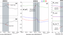 MMS1, MMS2, and MMS3 data from 05:26:41.7 to 05:26:43.7 UT on 3 July 2017 were averaged to yield the profiles in Fig. 7a–f. MMS4 data were omitted because it was not available from the import method provided by the pySPEDAS package58, which was used for extracting the data. The magnetic field data and plasma data were collected by the Fluxgate Magnetometer instrument59 and the Fast Plasma Investigation instrument60, respectively. The local LMN coordinate system obtained in Chen et al.53 was used, and the unit vectors are, in Geocentric Solar Magnetospheric coordinates, \(L=(-0.9840,0.1685,0.0578)\), \(M=(0.1781,0.9360,0.3036)\), and \(N=\left(0.0030,-\!0.3090,0.9511\right)\).