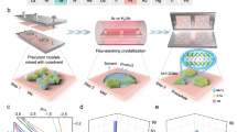 Figure 4c–e shows the STEM-ADF and energy-dispersive X-ray spectroscopy (EDS) elemental mapping images of ultrathin CoFe2O4 and MnxFeyCo3-x-yO4 alloy, respectively. The STEM images and FFT patterns exhibit perfect hexagonally arranged lattice fringes and high-quality single-crystalline phases with the [111] orientation (Fig. 4c, d), the same as the predicted orientation by the model (Fig. 4b). Due to the complicated atoms distribution of spinel-type structure and the similar atomic number of Co/Fe/Mn, the actual positions of different elements are difficult to be discriminated. In addition, the nanoscale EDS elemental mappings confirm that Mn, Fe, Co, and O are uniformly distributed throughout the entire crystal (Fig. 4e and Supplementary Fig. 7c). Cross-section STEM (Supplementary Fig. 8) results show that the surface of CoFe2O4 is likely to be passivated by the hydroxyl group, which further demonstrates the significant role of \({\varepsilon }_{c}\) (by water) for promoting 2D growth and is in line with the model as well.