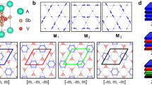 Figure 1a and b sketches the structure of CsV3Sb5 (P6/mmm space group). The unit cell is described as individual sublattices of a kagome network of V coordinated by Sb1 atoms and a hexagonal net of Sb2 above and below each kagome layer. The lattice parameters obtained from the DS at room temperature (a = b = 5.49 Å, c = 9.34 Å) are consistent with the reports in the literature7,8. The temperature dependence of the CDW instability at the L point is displayed in the Fig. 1e, showing a sharp onset at ~95 K, indicative of a first order-like phase transition. Bragg reflections with the same temperature dependence (not shown) were also measured with propagation vectors (0.5 0 0) and (0.5 0 0.25) r.l.u.27.