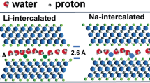 All the density functional theory (DFT) calculations were performed by Vienna Ab initio Simulation Package (VASP)43. The nuclei-electron interaction was treated by projector augmented wave (PAW) potential44. The Perdew-Burke-Ernzerhof (PBE) version of generalized gradient approximation (GGA) was adopted for exchange-correlation functional45. The energy cutoff of the plane wave basis sets was set to 500 eV. The optB88-vdW functional was adopted to account for the van der Waals interaction46. Supercells containing 12 formula units of Ti3C2O2 were used to model MXene. 17 water molecules with different numbers of protons (0, 1, 2 and 3) were randomly placed in between MXene layers. The convergence criteria were set to 10−5 eV in energy and 0.01 eV/Å in force.