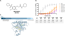 Previous work has demonstrated that mutations in PfACS11 have been found to confer resistance to multiple acetyl-CoA synthetase (AcAS) inhibitors31,32,40 and that PfACS11 is not essential for asexual blood stage parasite growth described in a P. berghei knockout model34 and a P. falciparum PiggyBac essentiality screen41. Our work reported herein demonstrates that resistance is conferred by the mutations selected by MMV665924 and MMV079179. To further investigate the mechanism of resistance, we tested the susceptibility of the previously described ACS11cKD and control YFPcKD parasites40 to MMV665924, MMV079179, and MMV897615 in the presence or absence of aTc. Knockdown of PfACS11 protein levels resulted in a higher level of resistance to all three drugs (Student’s t test p < 0.001, Supplementary Data 1 and Fig. 5f–h). Interestingly, even in the presence of 50 nM aTc, the ACS11cKD was 2-fold resistant as compared to the YFP control, perhaps due to the HA-tag resulting in protein destabilization. These results suggest that a reduction or destabilization in PfACS11 protein might drive the resistance mechanism.